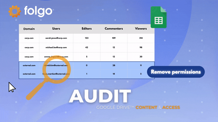 Google Workspace administrators can also leverage Folgo admin feature to perform domain wide audits. Learn more.