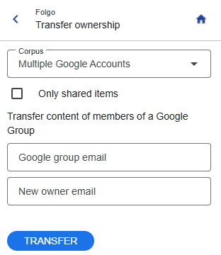 To transfer content from multiple users at once, follow the same process but enter a Google Group email address as the source.